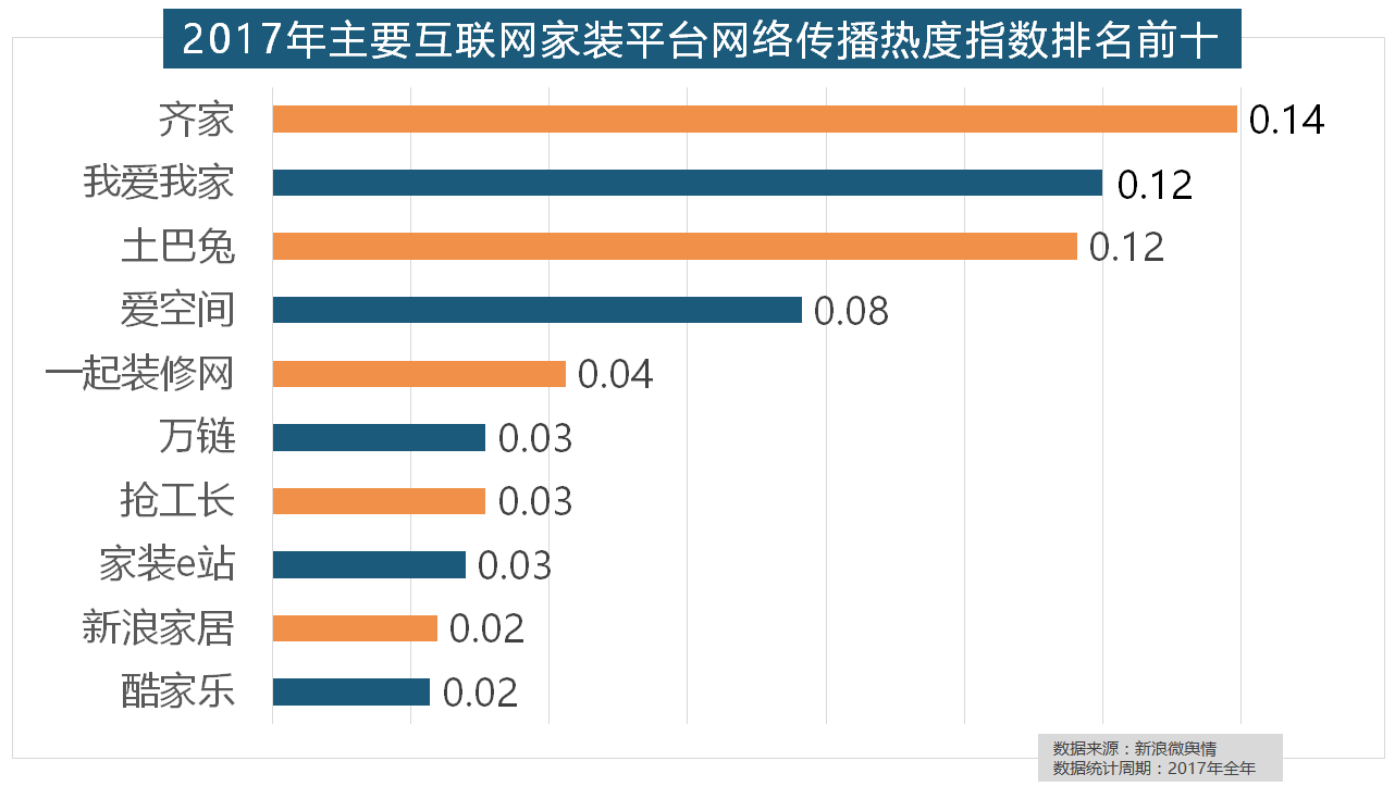 此外,国产物牌占领支流,且前两名都被国产物牌占领。2017年,名雕粉饰、亚厦粉饰、城市人家粉饰、阔达粉饰、元洲粉饰也榜上出名,2017年,2017年,2017年,排名第六,占领前三,我们遴选了跨越500个品牌进行数据统计取阐发,齐家、我爱我家、土巴兔、爱空间、一路拆修网的收集热度指数排名前五!